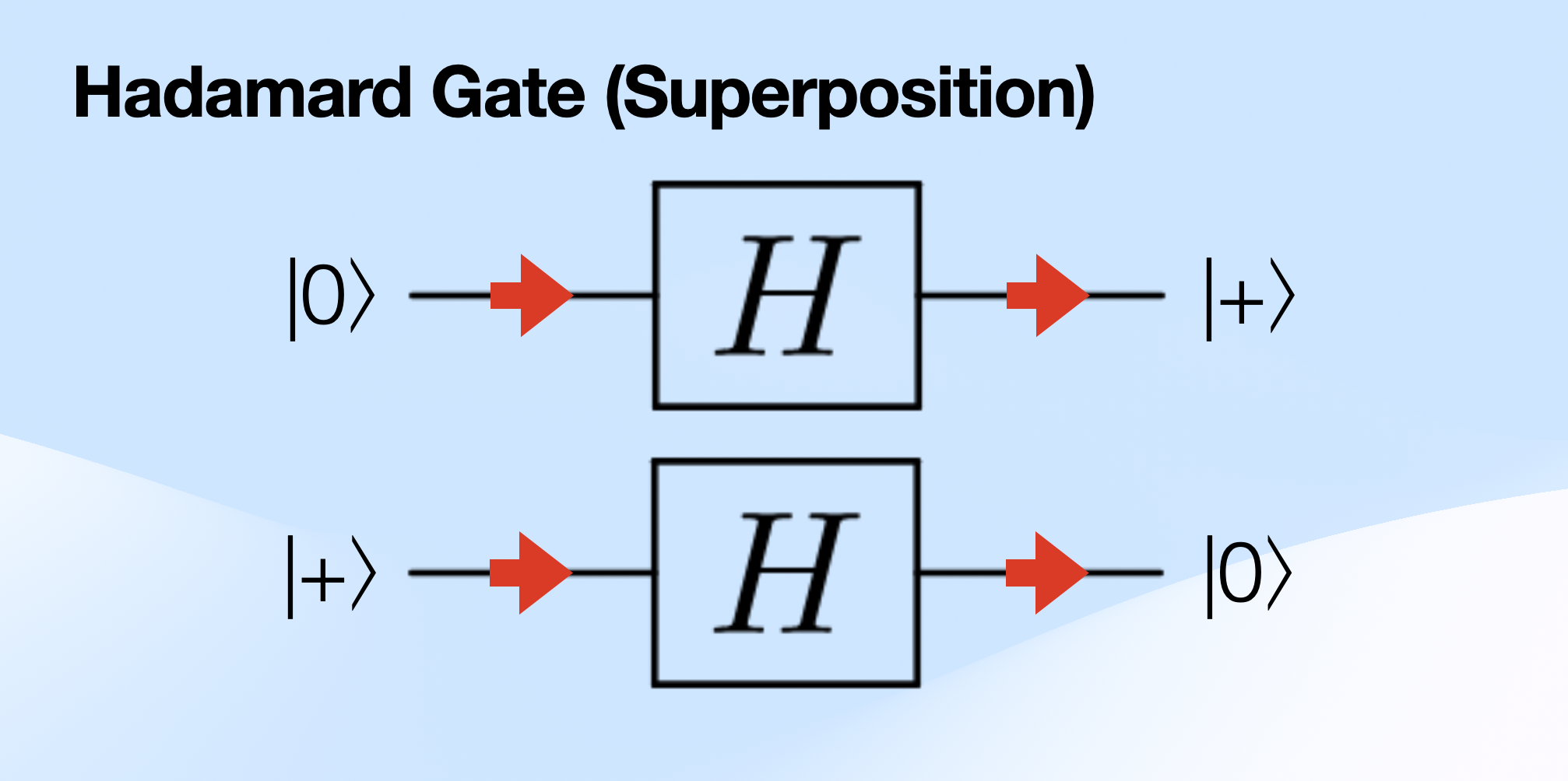 แนวคิดพื้นฐาน: Hadamard Gate เปลี่ยนคิวบิตจากสถานะพื้นฐาน |0⟩ หรือ |1⟩ ให้กลายเป็นสถานะซ้อนทับ (superposition)