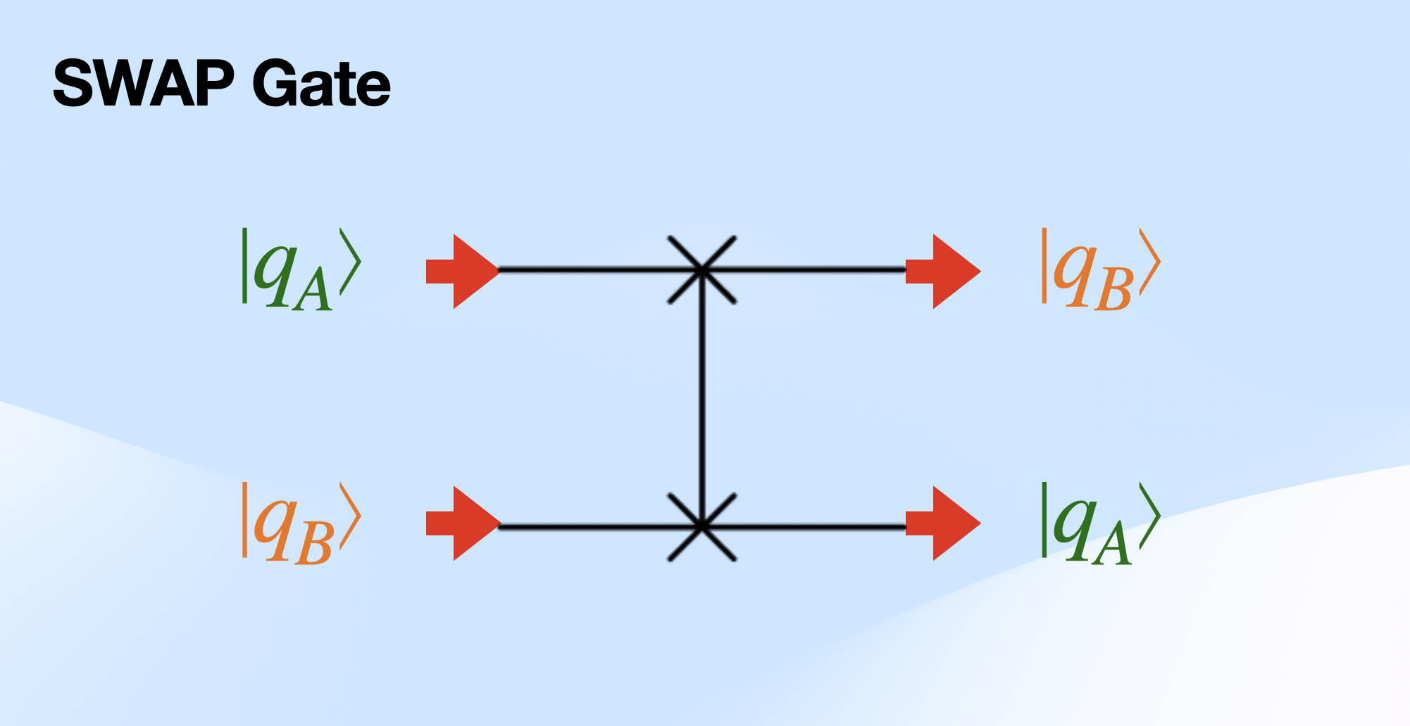 แนวคิดพื้นฐาน: SWAP Gate ทำให้สถานะของคิวบิตสองตัวสลับกัน เช่น ถ้าคิวบิต A เป็น |+⟩ และคิวบิต B เป็น |1⟩ หลังผ่าน SWAP จะกลายเป็น A = |1⟩, B = |+⟩