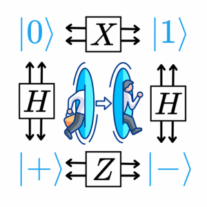 • |+⟩ ผ่าน Z → กลายเป็น |−⟩ และ |−⟩ ผ่าน Z → กลายเป็น |+⟩